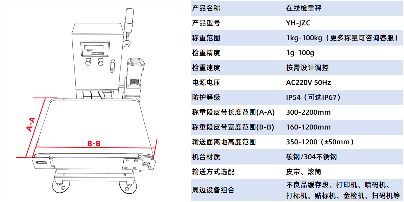 在線檢重秤可節省人力、提高效率,避免(miǎn)因包裝過量導致無謂之損失或(huò)因(yīn)重量不足而引起之客戶抱怨,以提升(shēng)客戶(hù)之滿意度(dù),為自動生產線及包裝線上之合適品檢設備.