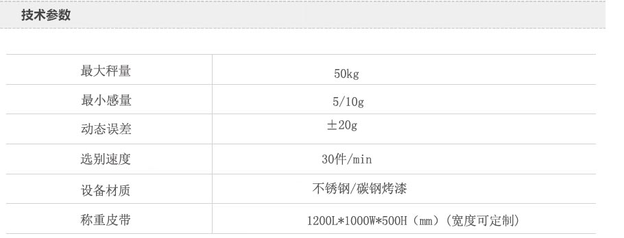 中文顯示:7英寸全中文彩色(sè)液晶屏幕,全程中文引導操作,智能報警(jǐng)顯示; 智能高效:中文觸控界麵、多組配方保存、密(mì)碼權限管理、中(zhōng)文稱重記錄、智能故障檢測等; 操作方便:觸控式啟動(dòng)/停止按鈕 功能切換:可選停車檢重或連續秤重,異常時停車報警或者自動剔除;