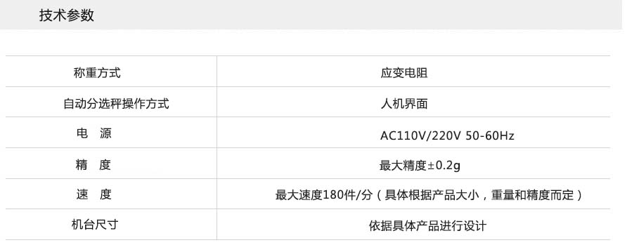 精 度:最大精度±0.2g(具體根據產品大小,重量(liàng)和速度而定)